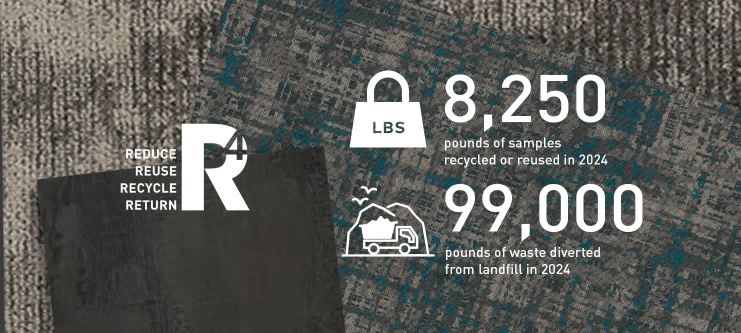 We developed the R4® program (return, reuse, recycle, reduce) specifically for our customers across the country to facilitate the recycling of all Carpet, LVT, and Kinetex samples and architect folders that are no longer needed.