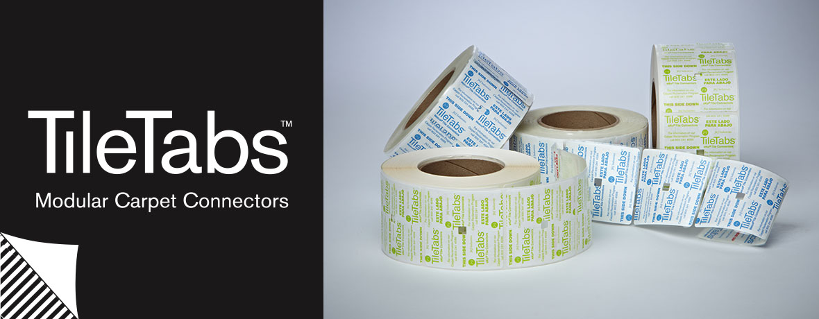 TileTabs are high tack adhesive tabs that connect carpet tiles together, resulting in a continual layer that gently grips existing flooring. Escape typical trappings with TileTabs for a versatile, glue-free installation solution for modular carpet goods. Just peel, place, & press!